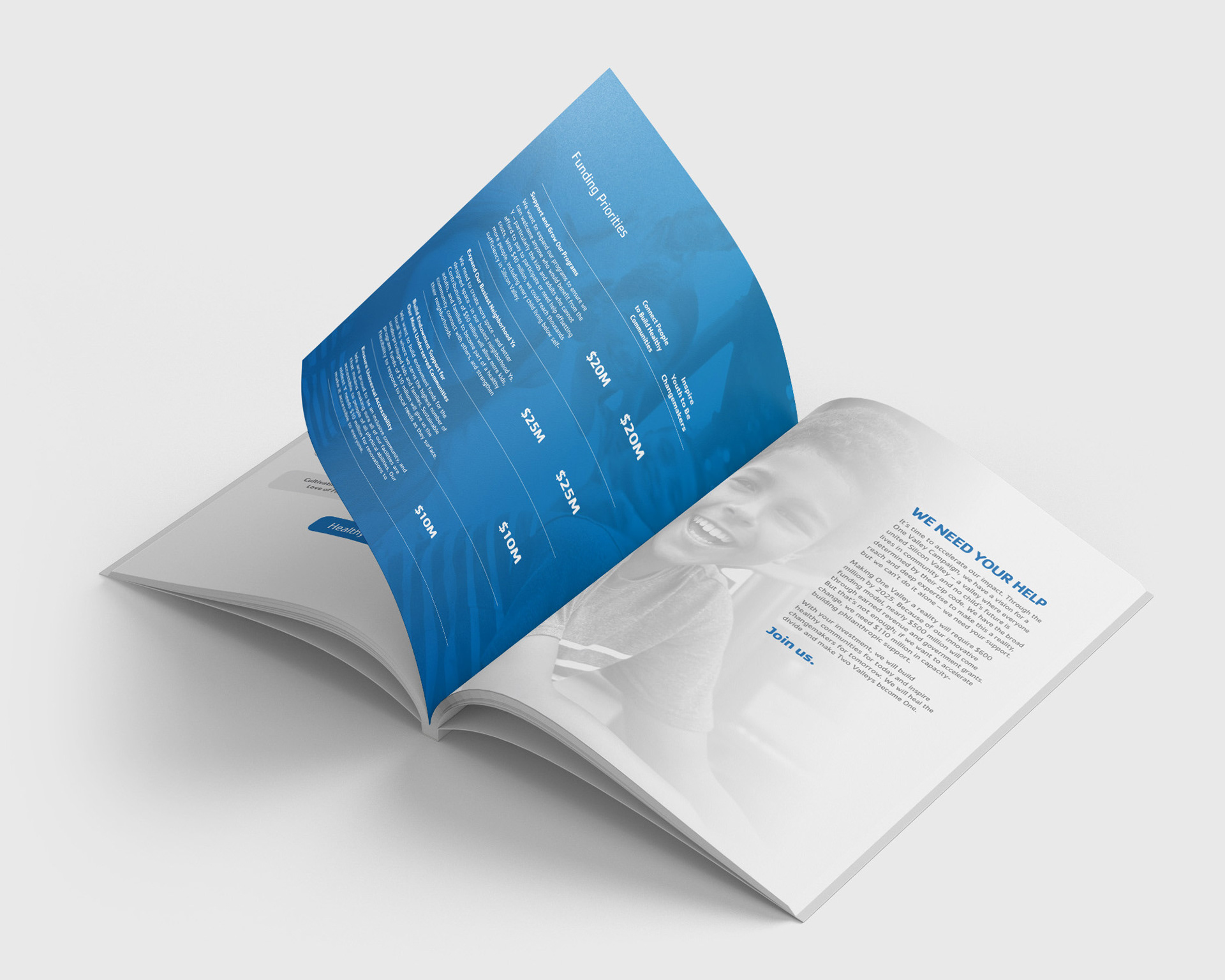 Solution: Highlight disparities and present giving opportunities through a compelling printed piece that combines impactful imagery with data-driven visualizations and a clear call to action.